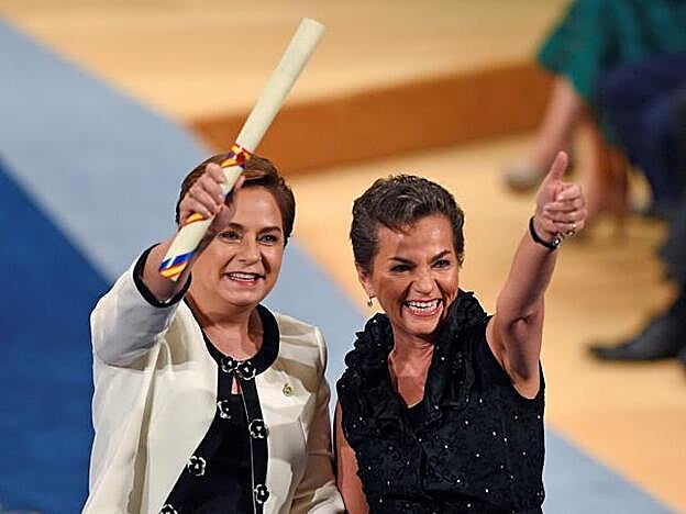 La antropóloga Christiana Figueres, que ha recogido el galardón de Cooperación Internacional, quiso compartir el premio con la princesa Leonor y el resto del niños del mundo porque "tenemos en nuestras manos la posibilidad de crear un futuro mejor" apostillando que "ese Tratado de París es un regalo de esperanza para todos los niños del mundo".