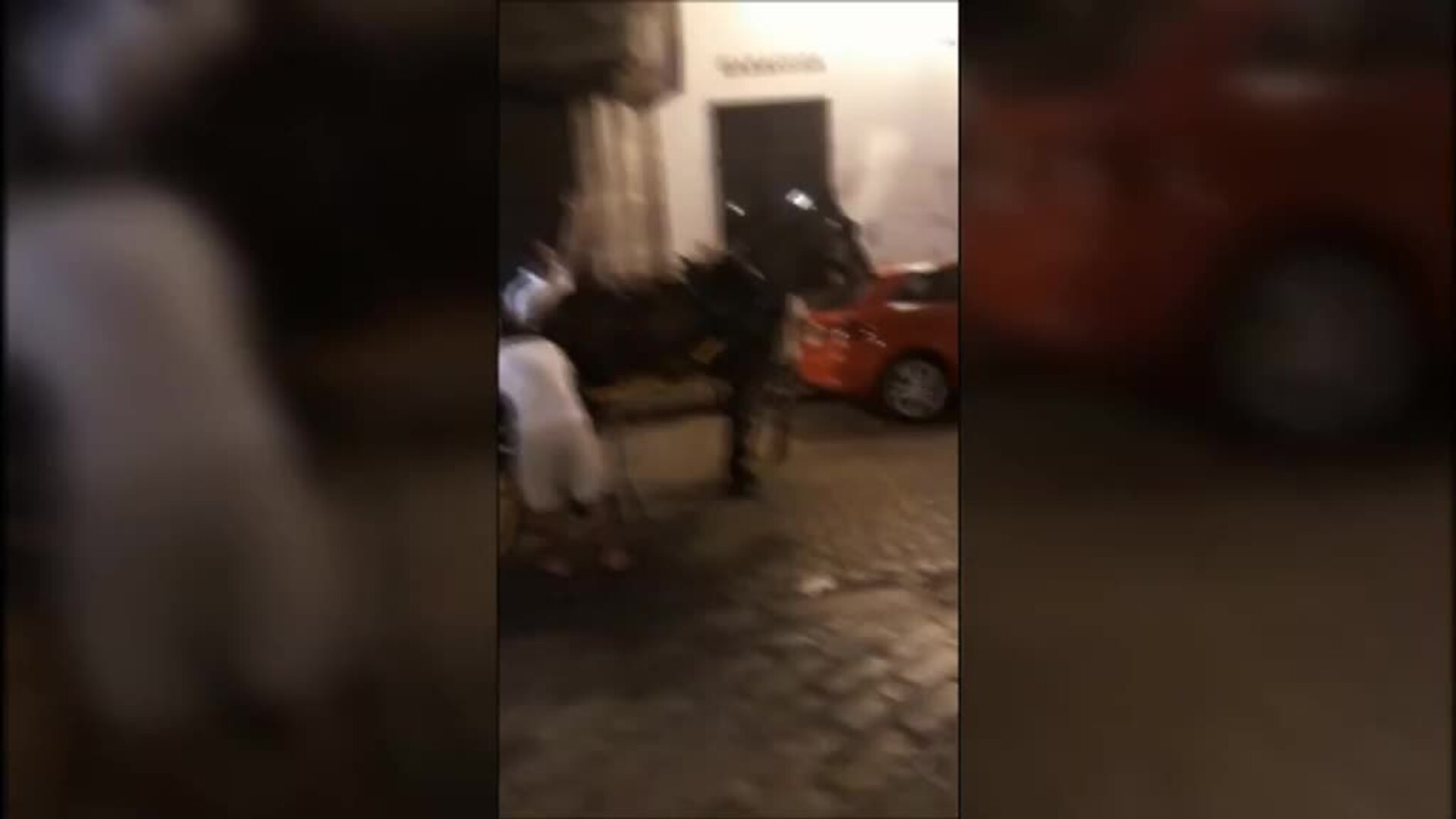 Denuncia en las redes sociales del maltrato a una yegua de calesa. No es la primera vez que vemos cómo estos animales sufren en pleno centro de Sevilla El animal, sin fuerzas, ya sea por las horas de trabajo o el fuerte calor, se desploma y se golpea la boca. Su dueño, con ayuda de otras personas, intenta ponerla en pie. Pero su actitud hace que la gente de alrededor, indignada por lo ocurrido, increpe al cochero.