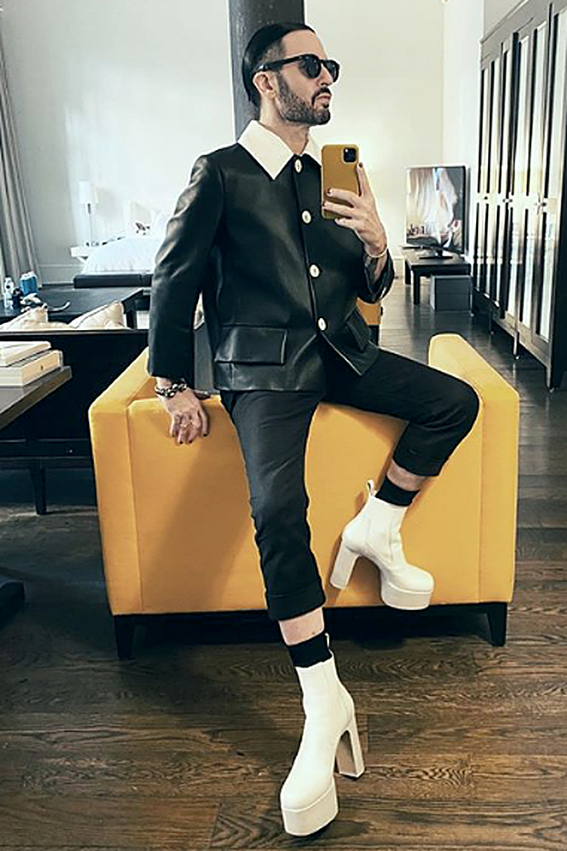 Todo este torrente creativo ha encontrado una nueva vía de escape ahora que el diseñador se encuentra confinado en su apartamento de Manhattan y ha sabido hacer del trabajo en remoto un asunto de interés global para el circuito de la moda. Todo comenzó el pasado mes de noviembre con un par de botas de plataforma de Rick Owens que se convirtieron en su obsesión a la hora de hacerse infinidad de selfies. Tan en serio se lo ha tomado que, desde que no puede salir de casa, ha comenzado a airear su nutrido vestidor, creando un look especial para cada día en el que los abrigos de Prada se codean con sus vaqueros favoritos de Celine o las últimas americanas de Gucci. Una osadía que han aplaudido todos sus seguidores.