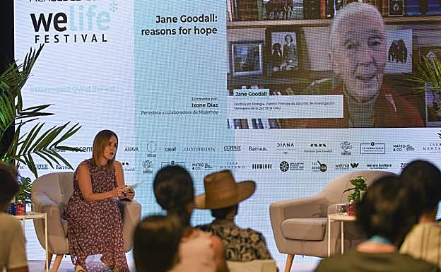 Jane Goodall ha querido remarcar la importancia que tenemos cada uno como individuos para revertir el daño al medio natural: «A no ser que seas muy pobre, puedes elegir productos alimenticios o textiles sostenibles, lo que supone una presión hacia las empresas», ha afirmado al igual que lo hicieron otros ponentes del Mercedes-EQ Welife Festival, comoIsabel Jiménez, en su charla sobre qué podemos hacer como individuos para salvar el planeta, o Aitor Sánchez, en su ponencia sobre alimentación saludable o sostenible.