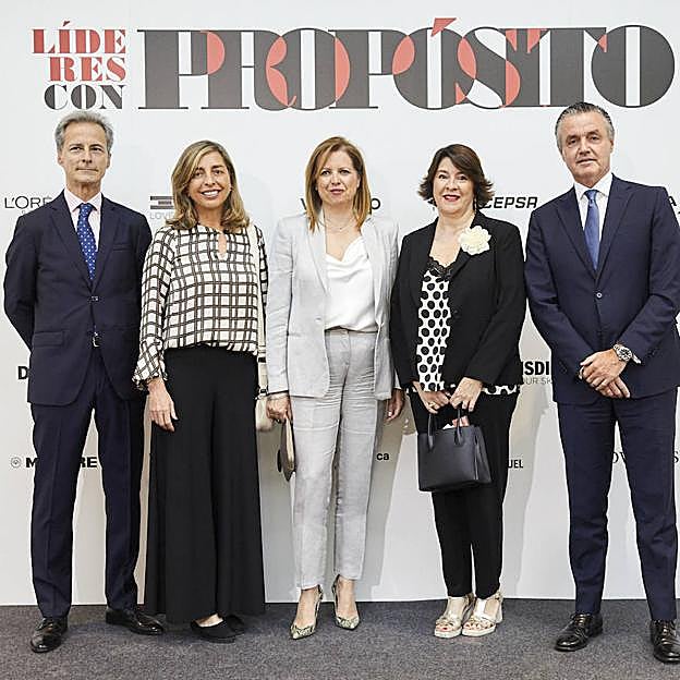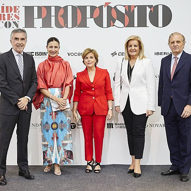 Iñaki Arechabaleta, CEO de Vocento; Samary Fernández, directora general del área de Lujo, Estilo de Vida y Revistas de Vocento; Soraya Sáenz de Santamaría, socia de Cuatrecasas y exvicepresidenta del Gobierno; Fátima Báñez, presidenta de Fundación CEOE y exministra de Trabajo; e Ignacio Ybarra, presidente de Vocento.