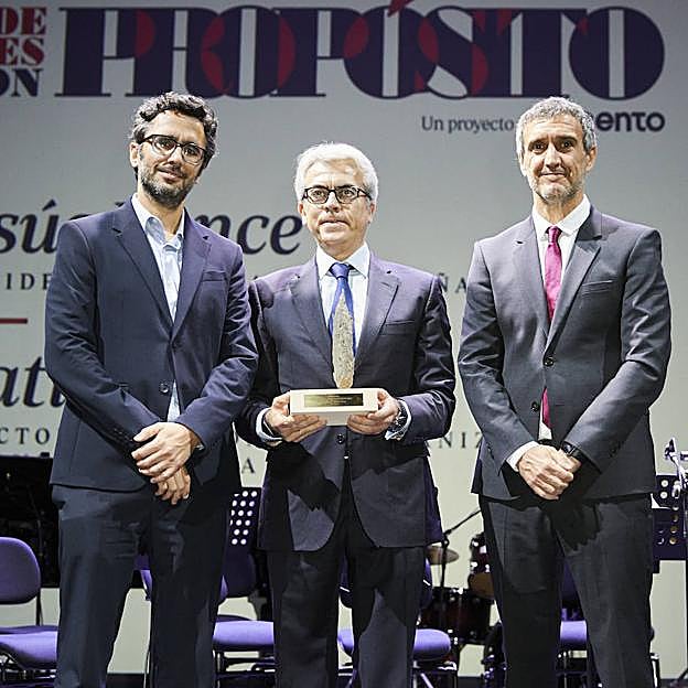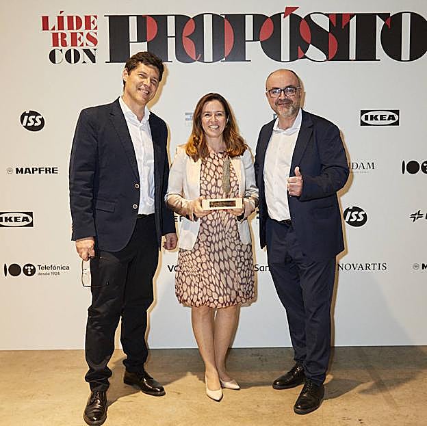 Tomás Pereda, subdirector de la Fundación Máshumano y miembro del comité asesor de Líderes con propósito; Belén Viloria, directora ejecutiva de BCorp; y Juan Naya, CEO de Isdin.