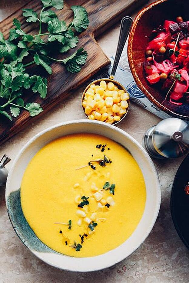 La cúrcuma le da a esta sopa un toque reconfortante, intenso y exótico, pero recuerda que para aumentar la biodisponibilidad de esta especia es necesario añadirle pimienta, como por ejemplo pimienta negra que le da una nota picante a la sopa deliciosa.
