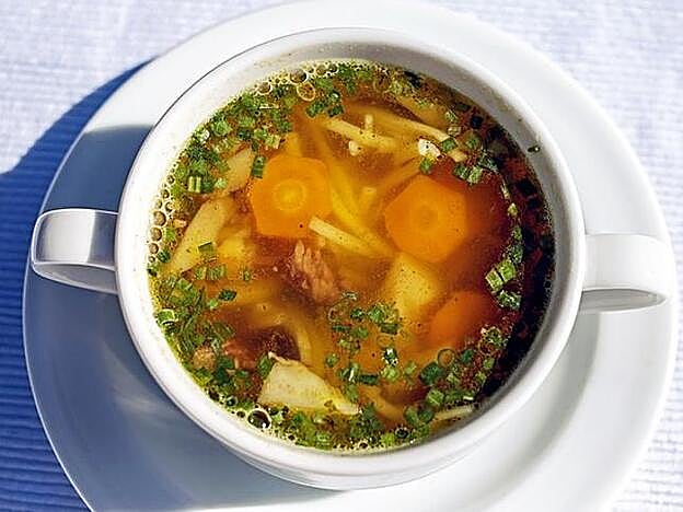 Es la sopa de verduras tradicional que seguramente has comido en alguna ocasión. Es baja en grasa, no aporta prácticamente calorías, pero sí mucha fibra saciante y un sabor entrañable y exquisito.