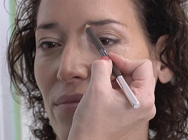 Sigue la regla de 3 para dibujarlas. Desde la aleta de la nariz, pasando por el lagrimal, marca un punto con el Lápiz de Cejas Respectissime de La Roche-Posay. Desde la aleta, pasando por el centro, marca otro punto. Por último, desde la aleta y pasando por el rabillo del ojo, marca el tercer punto. Ahora dibuja la ceja con trazos pequeños.