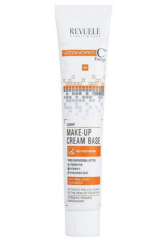 Con Make-Up Cream Base Vitanorm C+ de la marca Revuele (a la venta en Primor) no solo cubres las imperfecciones y proporcionas un efecto segunda piel a tu rostro, sino que su formulación también incluye activos propios de los tratamientos más sofisticados para el cuidado de la dermis, convirtiéndose así en un híbrido perfecto entre base de maquillaje y tratamiento. Y todo se debe a que contiene una alta cantidad de vitamina C, que favorece la estimulación de la producción de colágeno y la neutralización de los radicales libres, mitigando las arrugas de expresión; y cuenta además con ácido hialurónico y troxerutina.