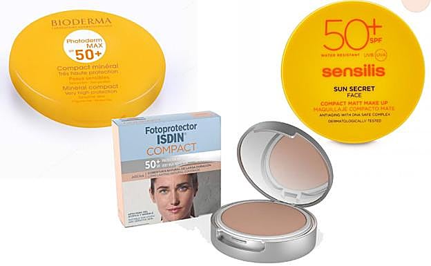 ¿Te gusta la idea de ir protegida a la playa pero con la piel bronceada y unificada con un acabado mate? Aquí tienes otras opciones de polvos compactos con SPF 50, para que puedas ir de vacaciones a la playa y seguir igual de divina. Nuestra primera opción son los polvos compactos de Bioderma Photoderm Max SPF 50, que unifica el tono de tu piel con un acabado matificado (12,95 euros en El boticario en casa); seguimos con el Sun Secret de Sensilis, que mejora el aspecto y el color del rostro, aportándole luminosidad y protegiéndolo del sol (9,90 euros en PromoFarma); y terminamos con el fotoprotector facial de Isdin, que unifica el tono de la piel, difumina las imperfecciones y le otorga un tono natural (17,99 euros en Primor).