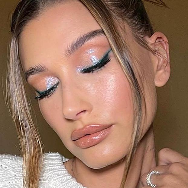 Se trata de un maquillaje que ha hecho la maquilladora Nikki Wolff a Hailey Bieber para la temporada festiva, pero sin ser demasiado obvio y llamativo. Un look que tiene detalles especiales perfectos para lucir en estas fiestas navideñas, pero que son sencillos de copiar y tan sutiles que no estarás demasiado recargada. «Hailey quería algo divertido y bonito, pero cómodo, y quería jugar con el color», explica la experta en unas declaraciones recogidas por la revista Vogue . «Así que delineé sus ojos con un delineador de lápiz verde y luego usé una sombra de ojos iridiscente en las esquinas media e interna, para crear un efecto multidimensional«, detalla.