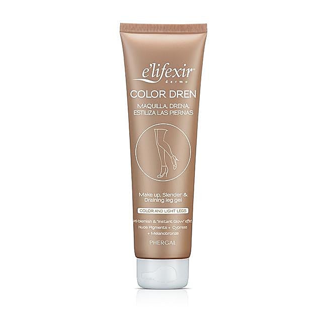 Color Dren de E'lifexir es un gel de color para piernas que aporta un tono dorado y además ejerce un efecto drenante y relajante, reduciendo al mismo tiempo volumen e imperfecciones. Tiene un efecto «glow» inmediato que aporta un tono dorado veraniego.
