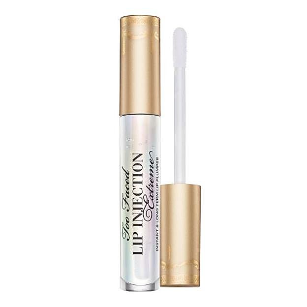 Lip Injection Extrême de Too Faced le da a tus labios más volumen en un instante y desde la primera aplicación. Se desliza como un gloss transparente y capta la luz para aportar un brillo extremo y un efecto de volumen inmediato. Eso sí, los activos pueden provocar una ligera picazón (29,99 euros).