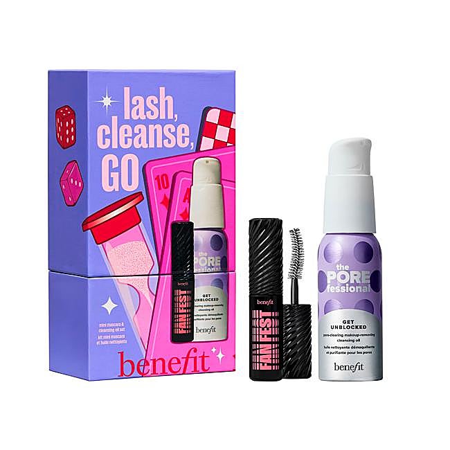 Este dúo combina una mini máscara de pestañas -perfecta para usar o llevar en el bolso- con un aceite limpiador que elimina el maquillaje sin irritar. Es el regalo ideal si buscas algo útil, bonito y para todos los públicos. ¿Qué incluye? Máscara de pestañas voluminizadora negra Fan Fest y aceite limpiador The POREfessional Get Unblocked para desmaquillar y desobstruir los poros.