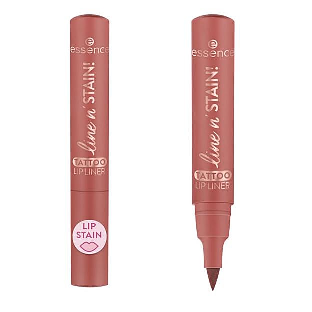 La opción favorita es Line n' STAIN! de Essence (2,99 euros), un delineador de labios líquido disponible en dos tonos: un color marrón cálido y un nude rosado de lo más favorecedor. Se trata de un cosmético que puedes aplicar con solo una pasada gracias a una textura acuosa que es increíblemente ligera en los labios y proporciona un color intenso.