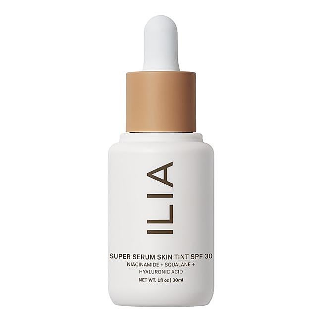 Super Serum Skin Tint SPF 30 de Ilia es una fórmula revolucionaria, saludable y limpia fusiona maquillaje, cuidado de la piel y SPF 30 en un solo paso, ofreciendo ligereza (sin dejar un residuo blanquecino). Esta fórmula utiliza óxidos de zinc no nano que aumentan la efectividad del sérum y te protege de los dañinos rayos del sol, UVA, UVB, UVC, luz azul e infrarrojos. Ofrece una alta concentración de ácido hialurónico, los beneficios hidratantes del escualano y las propiedades calmantes de la niacinamida para una uniformidad incomparable del cutis. Precio: 50 euros en Sephora.