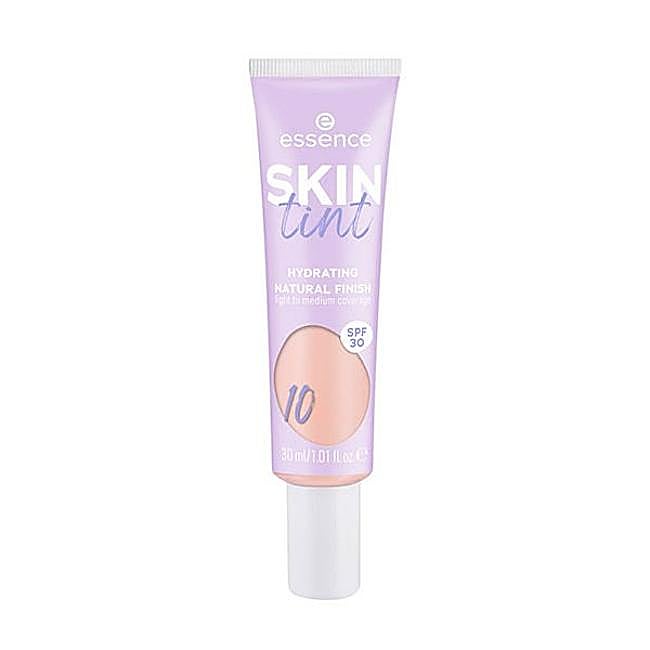 Skin Tint Hydrating Natural Finish de Essence iguala tu piel gracias a su cobertura de ligera a media. Al mismo tiempo, es superligero y cómodo. Es un tinte de piel que es la versión ligera de la base de maquillaje de la firma y no obstruye los poros. Es hidratante y sus ingredientes veganos incluyen aloe vera y ácido hialurónico. Según la ocasión y tu estado de ánimo actual, puedes aumentar la cobertura del tinte como quieras. Además, tiene SPF 30 que protege la piel del sol. Precio: 4,25 euros en Druni.