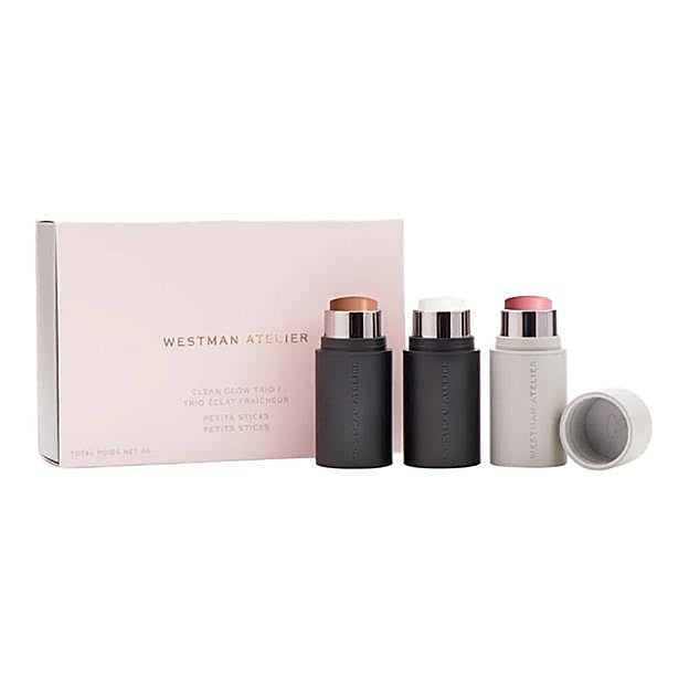Para un look super natural, fresco, luminoso y con efecto buena cara, en solo segundos, solo necesitas el Clean Glow Trio I de Westman Atelier. Se trata de tres sticks de maquillaje en crema con una fórmula ligera, fácil de aplicar y difuminar, que se funde con la piel, aportando el color necesario para embellecerla y reavivarla, sin que se note que llevamos maquillaje.