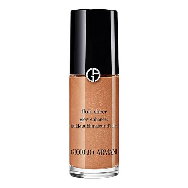 Esta la mezclaremos con el Fluid Sheer Glow Enhancer de Giorgio Armani, en el tono 11, que deja un velo fluido de luz, aporta un toque de color muy saludable y esculpe y define los rasgos del rostro. Una vez combinadas ambas fórmulas, las esparcimos con las manos de manera uniforme.