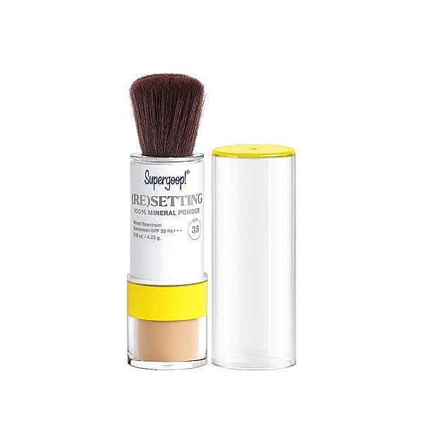 Aunque si crees que es demasiado brillo y tu piel tiende a generarlos naturalmente durante la jornada, opta por sellar sutilmente con unos polvos minerales super ligeros como los (Re)Setting de Supergoop!, que tienen factor de protección, dejan una textura sedosa, no acartonan y cuentan con brocha incorporada perfecto para llevar en el bolso y retocar a lo largo del día.