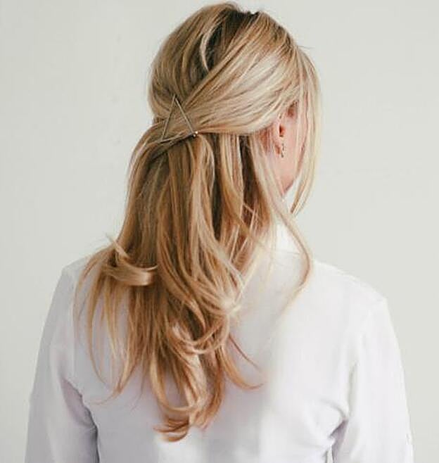 Si tienes algún juego de horquillas especiales, con ‘strass’, perlas o piedrecitas, colócalas en un lateral de tu melena haciendo un dibujo lineal. Haz como en la imagen y coloca tres encima de la orea y otras dos por debajo, ya que es el número perfecto para no quedarse corta, pero para tampoco pasarse.
