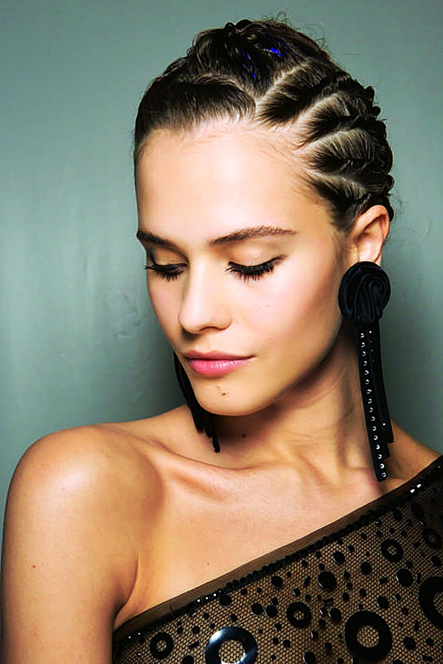 “Esta revisión de las trenzas de boxeadora (en versión mechón retorcido sobre sí mismo) sienta mucho mejor a los rostros alargados. Al despejar la cara, se pone en valor el equilibrio de los rasgos”, explica Omar El Gharbawy, director de Studio C.
