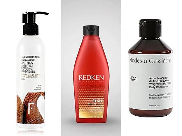El acondicionador tiene que ser sí o sí tu mejor aliado en verano si no quieres terminar esta época con el pelo encrespado. Este producto será el que nutra e hidrate en profundidad protegiendo y embelleciendo el cabello después del lavado. Prueba el Anti-frizz de Freshly Cosmetics (16 euros), el Frizz Dismiss de Redken (14,50 euros) o el H04 de Modesta Cassinello (23 euros).