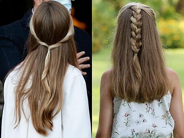 Puede que este sea el peinado favorito de Leonor porque siempre lo elige para cada una de sus apariciones públicas y lo mejor es que lo hace en diferentes versiones que nos deja con la mejor inspiración. En media melena recta o en melena XXL, estos dos semirecogidos son perfectos para presumir de un pelo bonito a cualquier edad. Haz el primero con la raya en el centro y recogiendo en los mechones laterales. Para el segundo, peina toda la mitad del cabello superior hacia atrás y haz una trenza ancha y despeinada.