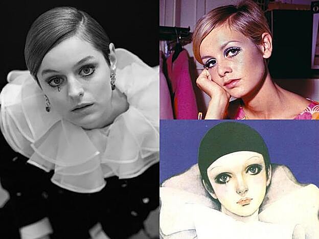 De eso se ha encargado la maquilladora Florrie White, que se ha inspirado en Twiggy y sus largas y marcadas pestañas con lápiz blanco trazando la línea de agua. Además, Emma Corrin ha seguido jugando con el estilo 'payaso triste' añadiendo una lágrima dibujada sobre una de sus mejillas. Este detalle, así como su melena peinada con raya lateral y efecto wet, logra acercarse si no mimetizarse con Pierrot el Payaso, un personaje popular que apareció por primera vez en una obra de Molière.
