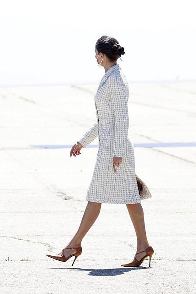A pesar del significado de su look, la Reina cierra su agenda semanal en un acto castrense en la villa madrileña de Colmenar Viejo con una de sus peores apuestas de estilo de la primavera Con un vestido-abrigo de tweed de Varela con historia (lo estrenó en 2006 en el bautizo de la Princesa Leonor) y unos complementos que tampoco terminan de convencernos (bolso de Carolina Herrera y zapatos de Magrit), lo único que nos hace reconciliarnos hoy con el look de doña Letizia es su favorecedor peinado: un moño de bailarina trenzado muy fácil de copiar y con el que conseguiremos quitarnos años de encima en cinco minutos, sobre todo, a partir de los 40.