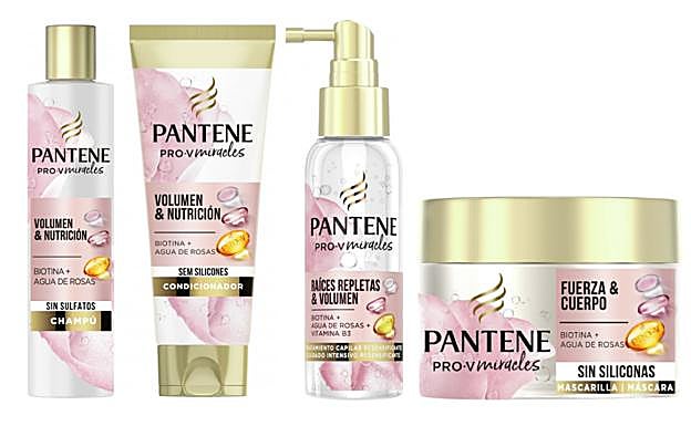 Se trata de la gama Volumen y Nutrición de Pantene que incluye champú, acondicionador, mascarilla y un tratamiento fortificante para las raíces. Combinando todos los productos, consigues que tu cabello tenga más volumen gracias a la mezcla de provitamina B5, antioxidantes y agua de rosas. La mascarilla puedes usarla una o dos veces por semana, dependiendo del nivel de deshidratación de tu cabello, y el resto de productos, a diario, para conseguir que tu pelo se convierta en pelazo. Están todos disponibles en Primor: Champú, 3,14 euros; acondicionador, 3,14 euros; mascarilla, 3,94 euros; tratamiento fortificante, 6,99 euros.