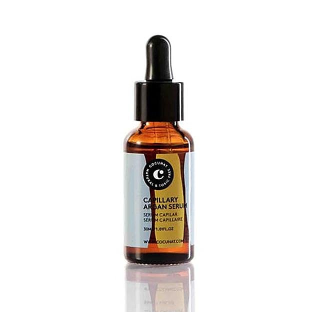 Capillary Argan Serum de Cocunat. Tratamiento capilar 100% natural creado con Aceites de Argán, Almendras Dulces, Girasol, Calabaza y Sésamo. El Aceite de Argán nutre tu cabello en profundidad y evita la aparición de puntas abiertas. Los Aceites de Girasol y Almendras Dulces mantienen tu cabello hidratado durante más tiempo. Los Aceites de Calabaza y de Sésamo suavizan el cabello y combaten el encrespamiento. Precio: rebajado a 19,96 euros.