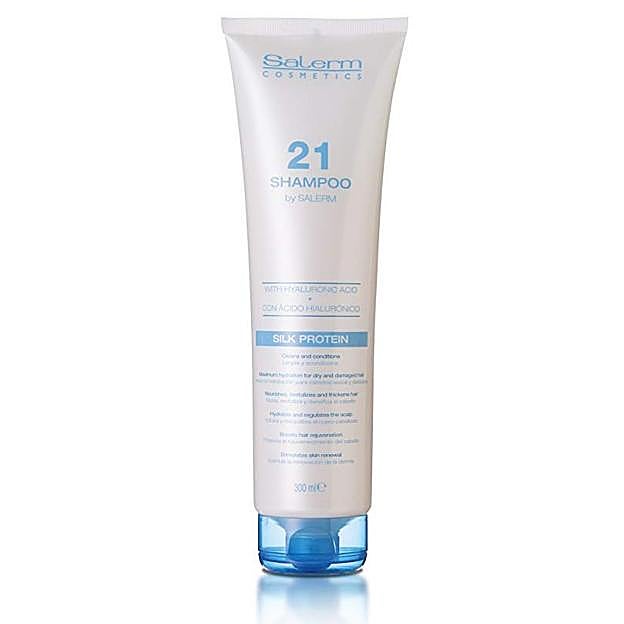 Salerm 21 Champú es un champú acondicionador ideal para cabellos secos y dañados que necesitan un extra de cuidado. Su fórmula repara en profundidad el cabello a la vez que lo lava con suavidad, respetando las características naturales del cuero cabelludo. Nutre, revitaliza y redensifica el cabello consiguiendo más suavidad, fuerza y reparación gracias a su fórmula con proteínas de seda, vitamina E y Pantenol. Precio: 10 euros.