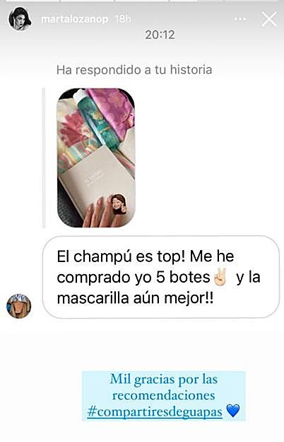 Desde la marca explican que nutre, repara y regenera el cabello seco y dañado; protege el pelo del salitre, el cloro y los rayos del sol; aporta suavidad, sedosidad y brillo. ¡Todo lo que necesitamos en verano! Y Marta Lozano no se ha podido resistir y a probarlo y ha enseñado a sus seguidores que ya lo ha añadido a su maleta de vacaciones. Una recomendación que sus 'followers' han apoyado y hablado de los buenos resultados que deja.