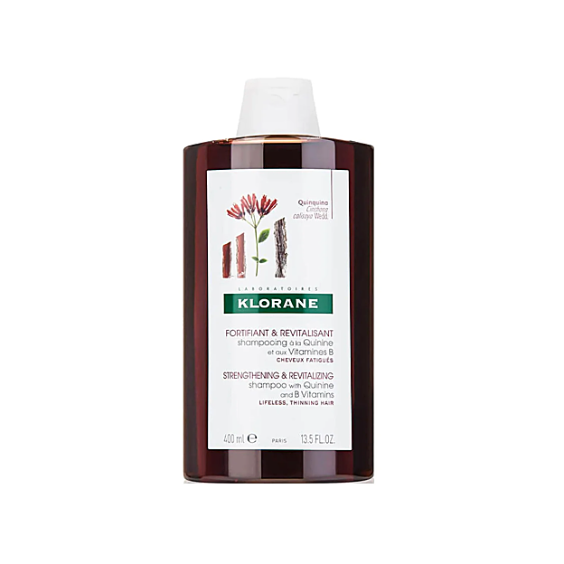 Champú anticaída de Klorane. Es un champú con extracto de quinina que combina vitamina B y quinina para que el pelo se fortalezca y se obtenga algo más de volumen. Es ideal para cabellos castigados, secos o propensos a caerse. Ayuda a sanearlo y a estimular el crecimiento capilar.