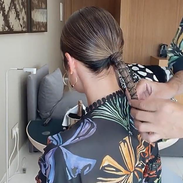 Para partir de esta base, podemos ver cómo Ramón comienza puliendo muy bien la melena de Nieves con un peine profesional de cardado y una espuma de L'Oréal muy barata que le ayuda a domar cada fibra capilar, a fijar el peinado y darle aún más brillo a la melena. Después, para sujetar el grueso del cabello y crear la coleta, Ramón recomienda utilizar una goma de gancho porque agarra muchísimo mejor todo el pelo. Como detalle, las patillas quedan sueltas y completamente lisas. Pero... ¿qué tiene de especial esta coleta que ha enamorado a todo Instagram?