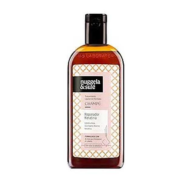 Champú Premium Polinesia de Nuggela & Sulé. Incorpora Keratina, esencial para la estructura del cabello y su fortalecimiento y además sirve para reparar daños en la cutícula y reducir la fragilidad. También contiene Colágeno que ayuda a mantener la elasticidad y la calidad del cabello. Y Ácido Hialurónico que mantiene una hidratación adecuada para prevenir el adelgazamiento del cabello, la sequedad y la fragilidad. Precio: 24,90 euros.