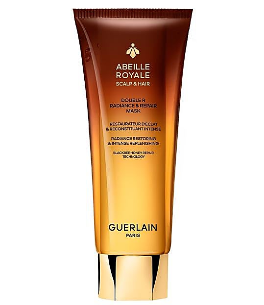 Mascarilla Double R Luminosidad y Reparación Abeille Royale de Guerlain. Combina las propiedades de dos mascarillas altamente eficaces para restaurar el brillo del cabello y regenerar intensamente la fibra. Precio: 87,90 euros.
