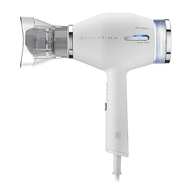 Oxy Ritual de Bellissima. Es el secador de pelo diseñado para el bienestar del cuero cabelludo y la belleza del cabello. Diseñado con la innovadora tecnología Oxy Care que enriquece el flujo de aire con moléculas de oxígeno activo: gracias a sus propiedades purificadoras y revitalizantes, ayuda a combatir la caída del cabello mientras lo seca y a purificar el cuero cabelludo. Además, ayuda a mantener el brillo y la intensidad del color, y previene su decoloración. La protección del cabello también está garantizada por el control de calor digital, que los protege contra el daño del calor excesivo, dejándolos suaves y brillantes.