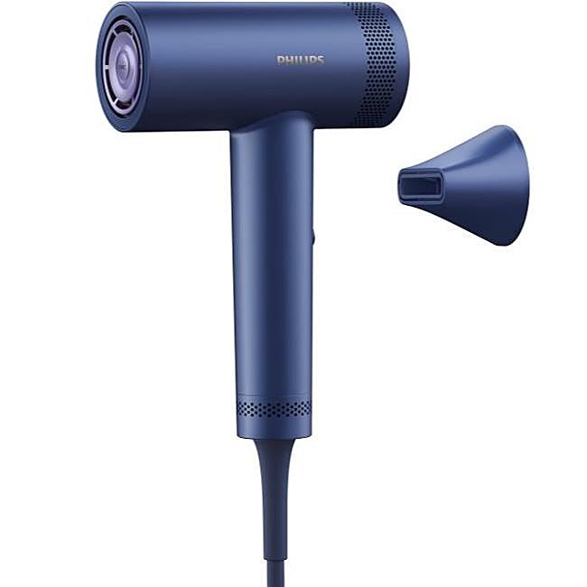 Hair Dryer 8000 Series de Philips. Es un secador iónico de alta velocidad más compacto. Se ha diseñado para proteger el cabello del daño por calor con sensores de temperatura ThermoShield Advanced para conseguir un cabello fuerte, brillante e hidratado en un abrir y cerrar de ojos. Gracias a su motor de CC sin cepillo de última generación, que gira hasta 110.000 veces por minuto, proporciona un secado eficiente con aire a 228 km/h que lo deja listo en tres minutos.