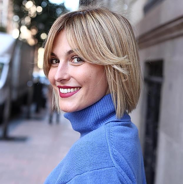 María explica que una buenísima opción para suavizar el rostro si tienes la cara alargada es optar por el flequillo cortina. ¿El motivo? «Rompe mucho y hace las facciones más anchitas». Además, es una opción genial porque es uno de los flequillos más cómodos y más fácil de adaptar y recoger cuando empieza a crecer.