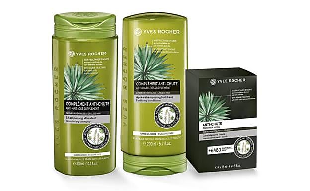 Este kit está compuesto por un champú fortificante, un acondicionador fortalecedor y una cura intensiva de un mes. está formulado con Lupino Blanco, que actúa sobre las 3 dimensiones de la caída del cabello: Incrementa la cantidad de cabellos en fase de crecimiento, estimula el crecimiento del cabello y ralentiza su caída. Lo puedes encontrar en la web de Yves Rocher por 31,95 euros.