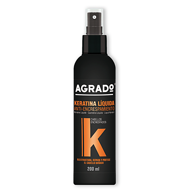 La Keratina Líquida de Agrado. Spray que complementa el tratamiento diario de los cabellos encrespados. La keratina ayuda a reparar la cutícula de la fibra dándole a tu cabello suavidad y vitalidad. Su uso sobre el cabello húmedo tras el lavado, si necesidad de aclarado, permite tratar tu cabello a diario de una forma rápida y cómoda. Precio: 1,59 euros.