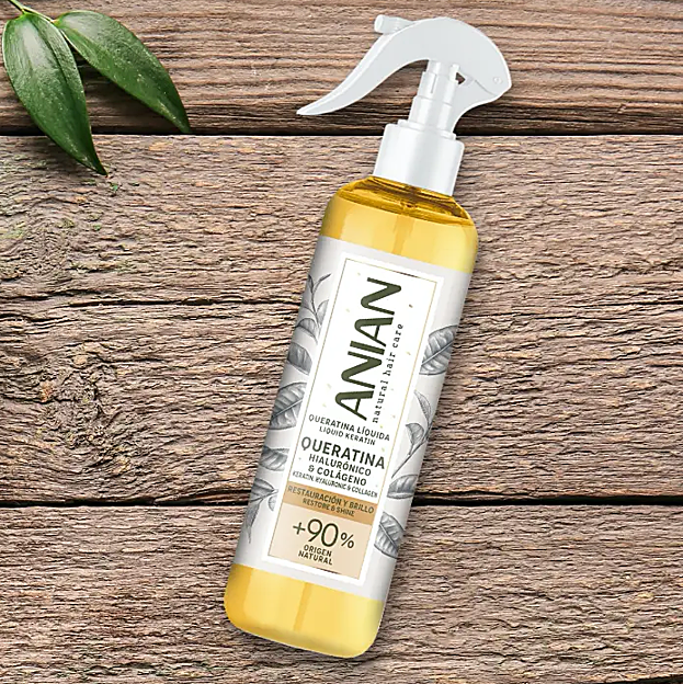 Queratina líquida con Ácido hialurónico y Colágeno Anian. Un tratamiento capilar de restauración que, con su uso continuado y constante, repara la fibra capilar desde el interior. Además, desde las primeras aplicaciones aporta brillo y suavidad al cabello. La fibra capilar mejora su nivel de hidratación y queda sellada gracias a la queratina, restaurándola. Elimina las puntas abiertas y rejuvenece el cabello. Precio: 2,99 euros.
