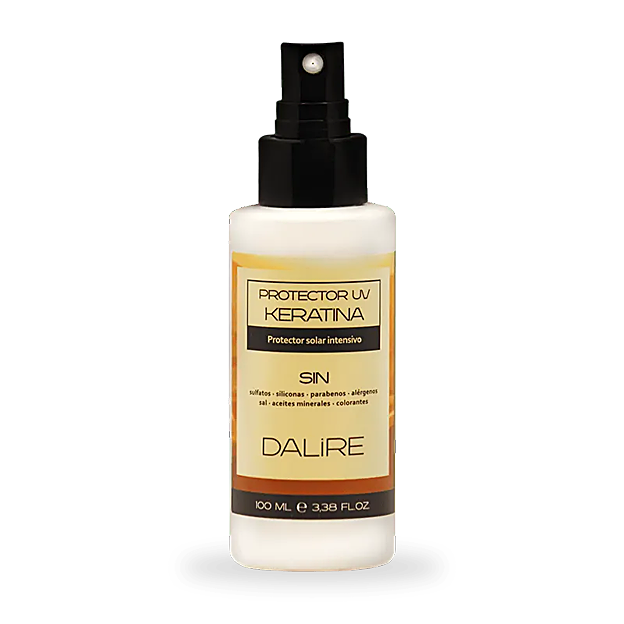 El Protector UV y térmico con keratina líquida de Dalire. Sirve para proteger y dar brillo y suavidad a tu cabello. Es un protector UV y térmico que gracias a keratina líquida repara las fibras del cabello y lo nutre desde la raíz dándole un aspecto regenerado. Además lo protege de los agentes externos, como pueden ser el calor excesivo producido por secadores, planchas, etc. Precio: 11,90 euros.