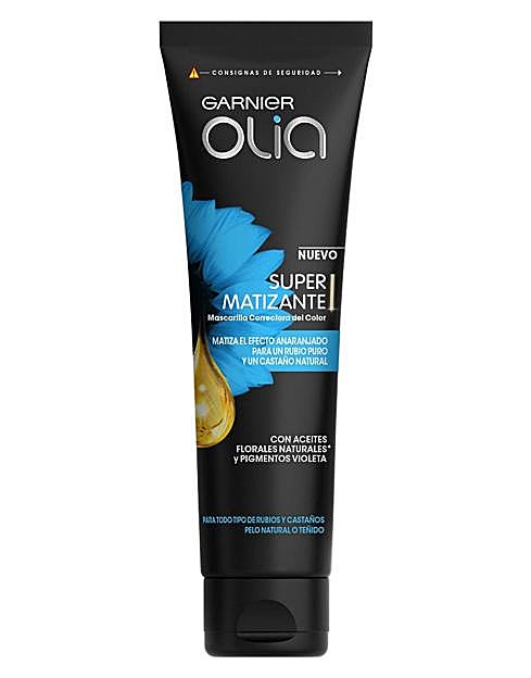 Se trata de Olia Super Matizante Mascarilla Correctora del Color de Garnier, un producto que matiza de forma progresiva el color del cabello para hacer desaparecer los tonos indeseados. Gracias a su fórmula enriquecida con aceites florales de origen natural y pigmentos de color violeta, permite eliminar los reflejos anaranjados o amarillentos. Desde la firma, recomiendan aplicarla sobre el cabello húmedo una vez a la semana y dejarla actuar 5 minutos en cabello rubio o 10 minutos en cabello castaño.