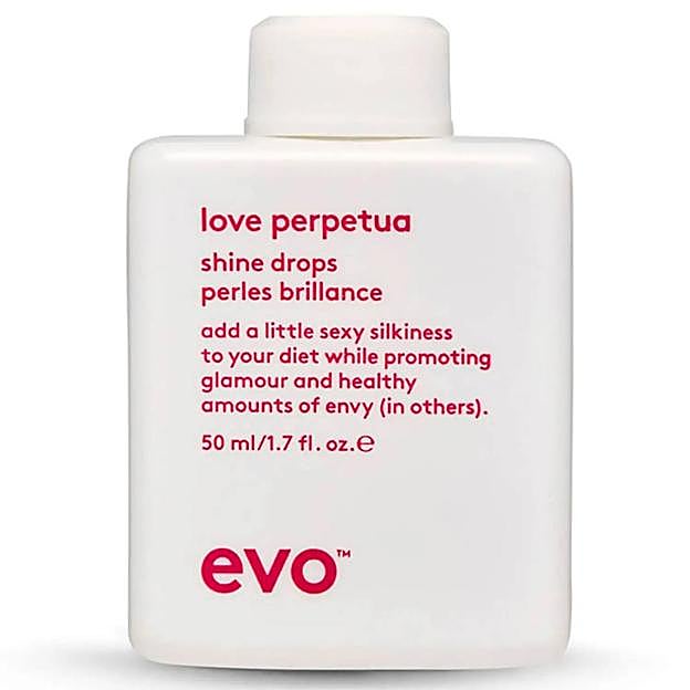 Love Perpetua Shine Drops de EVO es uno de los tratamientos para el brillo más aclamados en belleza. Un líquido ligero, nada grasiento, pegajoso o pesado, que actúa domando los cabellos rebeldes, haciendo más manejable la melena, sedosa e inundada de una luminosidad espectacular, como recién salida de la peluquería. Solo unas gotas sellan la cutícula del cabello y aumentan el brillo al instante y a largo plazo, presumiendo de un aspecto revitalizado y saludable. Aplica sobre el pelo seco, de mitad de la melena hacia las puntas.