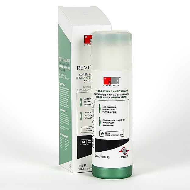 Revita.CBD de DS Laboratories. Cuenta con una fórmula con CBD de amplio espectro y es un acondicionador perfecto como tratamiento anticaída y estimulante folicular con acción antioxidante y antiinflamatoria para todo tipo de cabello. Además, controla la inflamación y la respuesta oxidativa, redensifica, previene el daño y acondiciona el cabello y contribuye a estimular el crecimiento del cabello y detiene la caída. Precio: 25,95 euros.