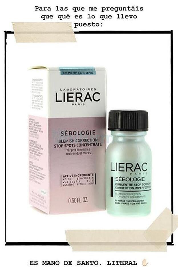 Así desvelaba a lo que recurre cuando necesita deshacerse de los odiosos granos. "Para las que me preguntáis que qué es lo que llevo puesto... Es mano de santo, literal".