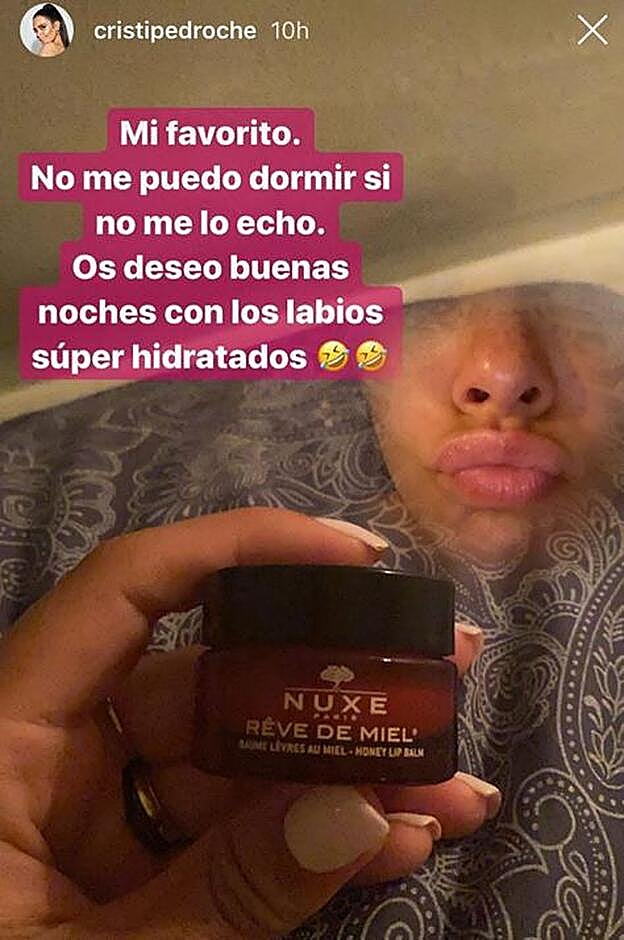 Hace unos días la presentadora compartía su rutina de belleza con la que mantiene la piel lisa e hidratada y lo hacía con un línea de productos de Nuxe de la que olvidó mostrar el bálsamo labial. Y ha sido ahora cuando Cristina ha enseñado cuál es el esencial del que no puede prescindir cada día, un bálsamo labial con el que mantiene los labios súper hidratados. "Es mi favorito, no me puedo dormir si no me lo echo", confesó en su perfil de Instagram la colaboradora de televisión.