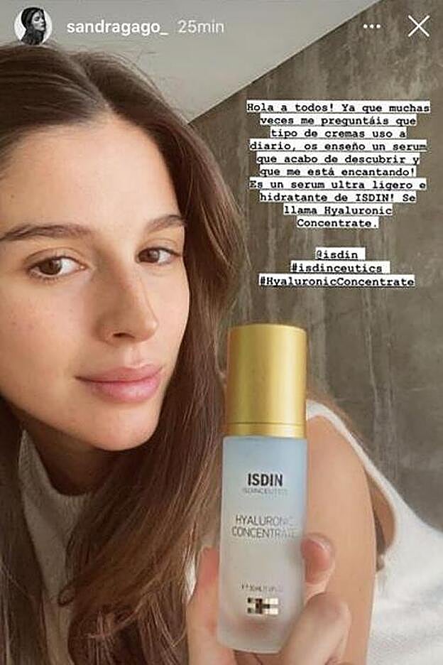 Se trata del nuevo lanzamiento del Isdin,el sérum Hyaluronic Concentrate, que está caracterizado por una textura agua gel que se absorbe muy rápido. Sandra Gago ha explicado a sus seguidores que se ha convertido en su favorito porque "deja una piel súper hidratada y luminosa", pero también porque" ayuda a prevenir y tratar las primeras líneas de expresión y reduce la visibilidad de los poros".