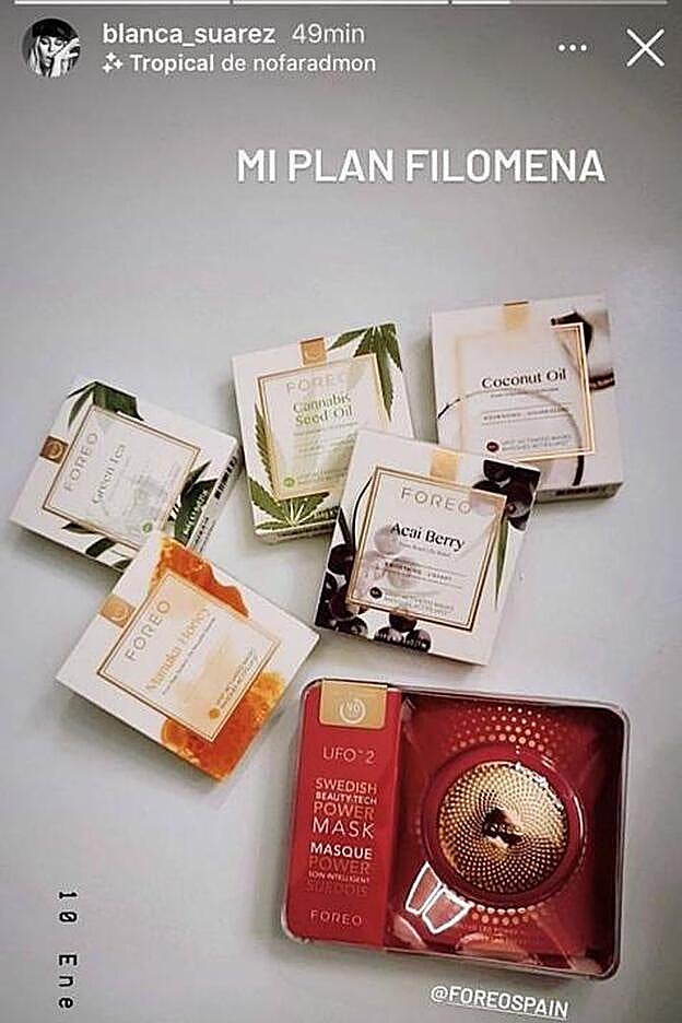 Blanca Suárez lo tiene claro y siempre que puede aprovecha su tiempo libre para cuidarse y mimarse. Y además de entrenar, la actriz tiene muy en cuenta el mantenimiento de su piel, por lo que recurre siempre a productos espcíficos con los que aumentar la hidratación y la luminosidad y prevenir la aparición de arrugas. Hace unos días enseñó que se ha apuntado a los beneficios de colágeno y que le gustan, y mucho las mascarillas. Utiliza esta coreana para tener la piel firmey esta para combatir las arrugas. Ahora, ha enseñado otras que aplica con el UFO 2 de FOREO.