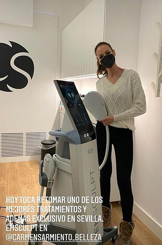 Se trata de un tratamiento que se realiza en Carmen Sarmiento, un centro de medicina estética situado en Sevilla del que parece ser muy fan. "Hoy toca retomar uno de los mejores tratamientos y además exclusivo en Sevilla", escribió Eva junto una imagen de ella en la que aparece en el propio centro. La presentadora habla de avanzada tecnología que sirve para remodelar la figura sin cirugía: EMSculpt.